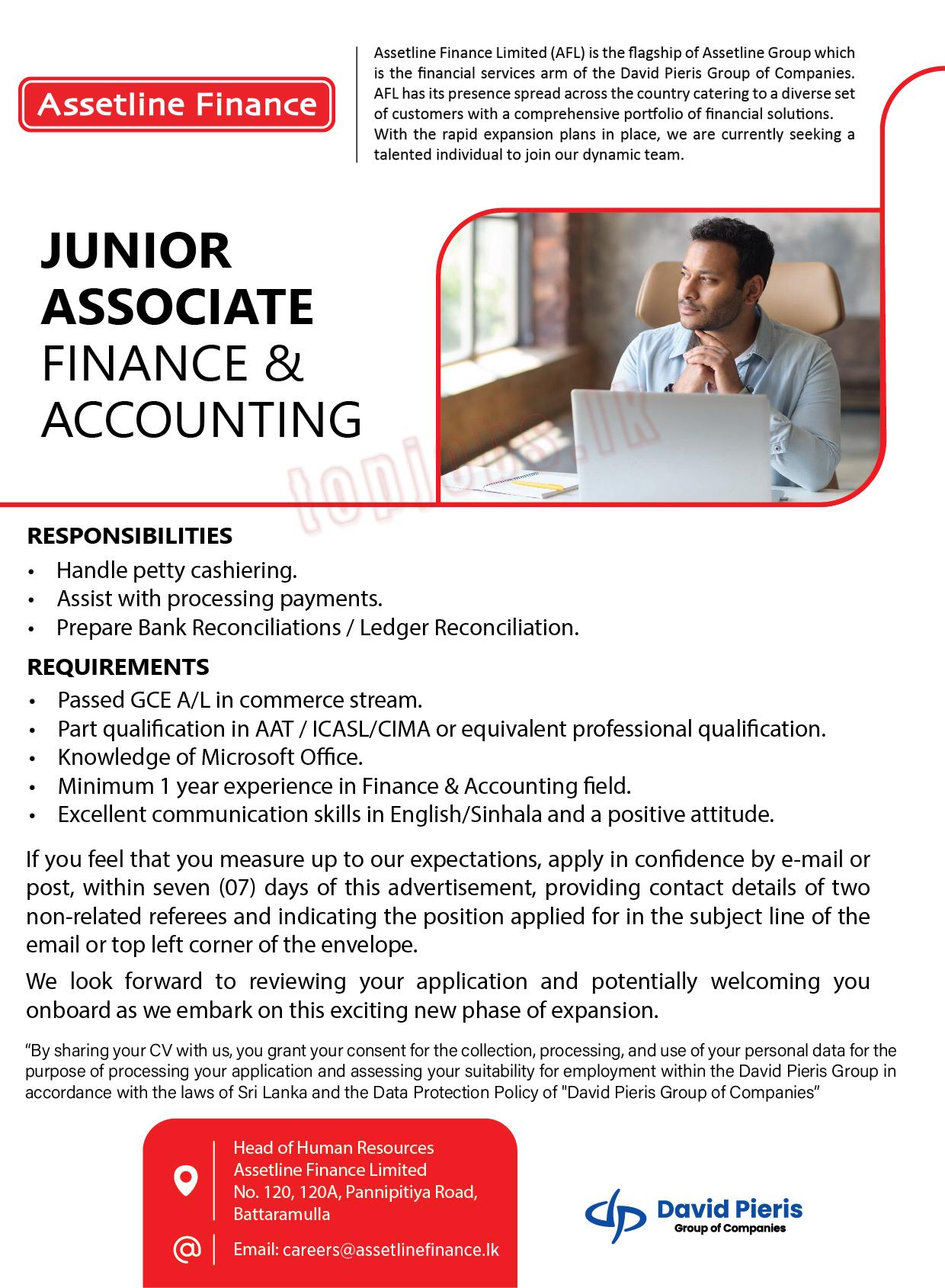 - Junior Associate – Finance & Accounting