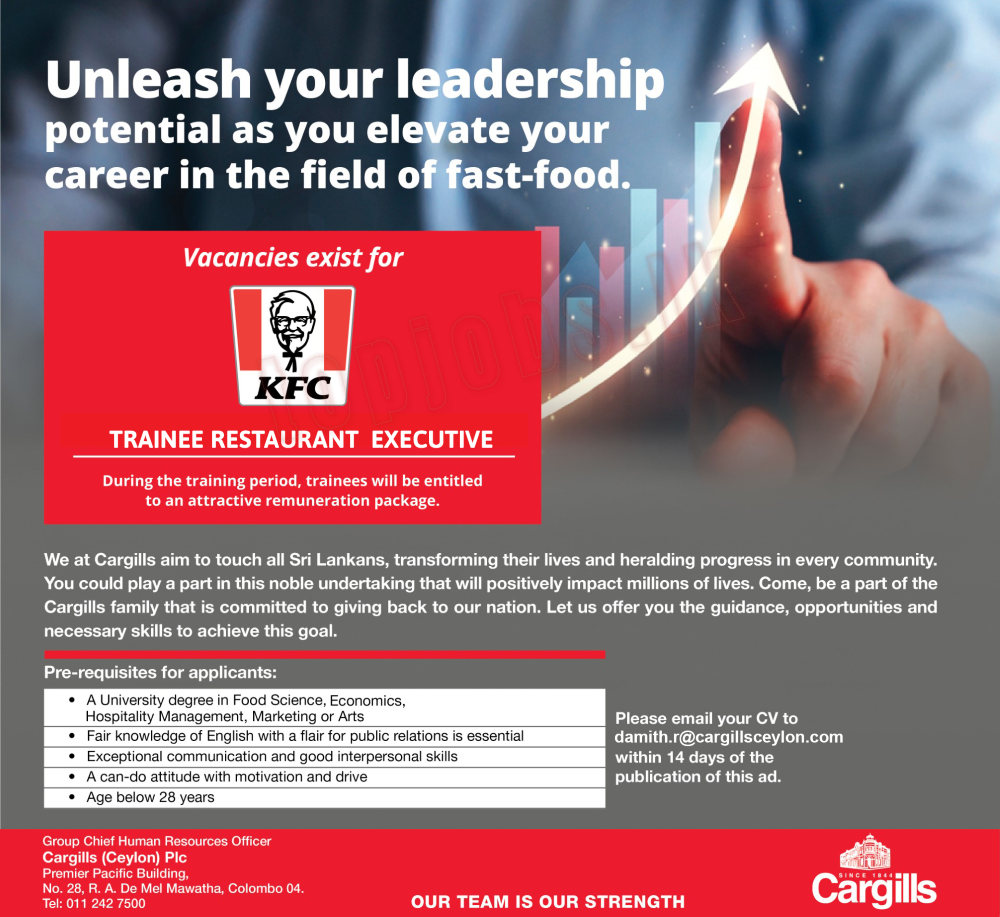Check openings at www.cargillsceylon.com/careers