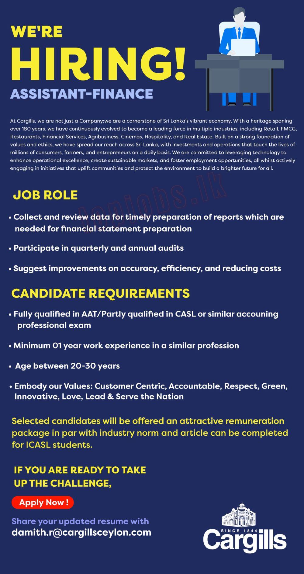 - Assistant – Finance