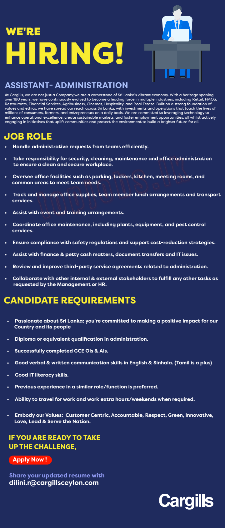 | Apply Online | Send your CV to damith.r@cargillsceylon.com |