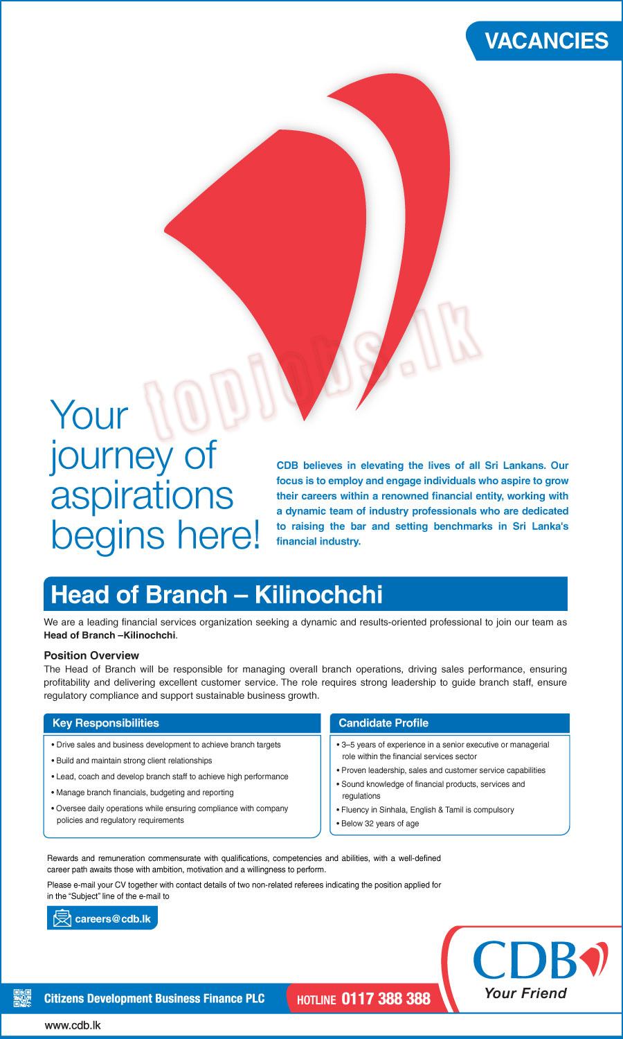 Looking for a career in Sri Lankaโs dynamic and rapidly growing financial sector? CDB Finance (Citizens Development Business Finance PLC) has announced new job vacancies for 2026, inviting passionate, skilled, and career-driven individuals to join one of the most innovative finance companies in the country. Whether you’re a fresh graduate or an experienced professional, this is your opportunity to grow with a top-tier non-banking financial institution.