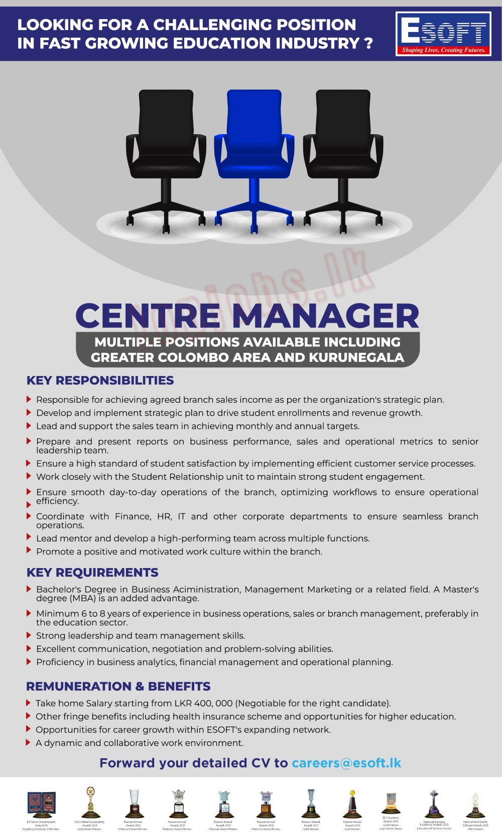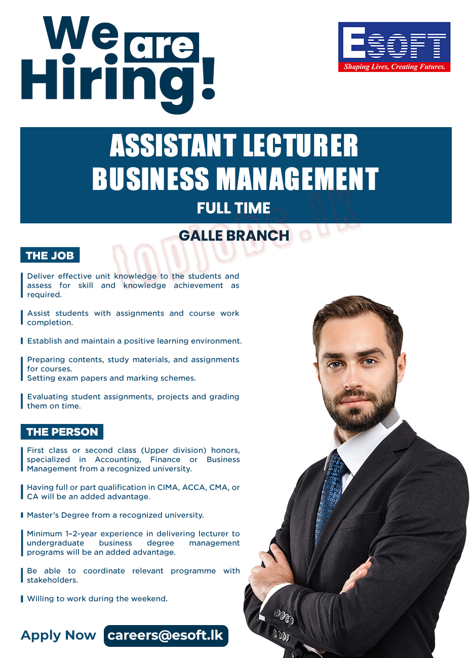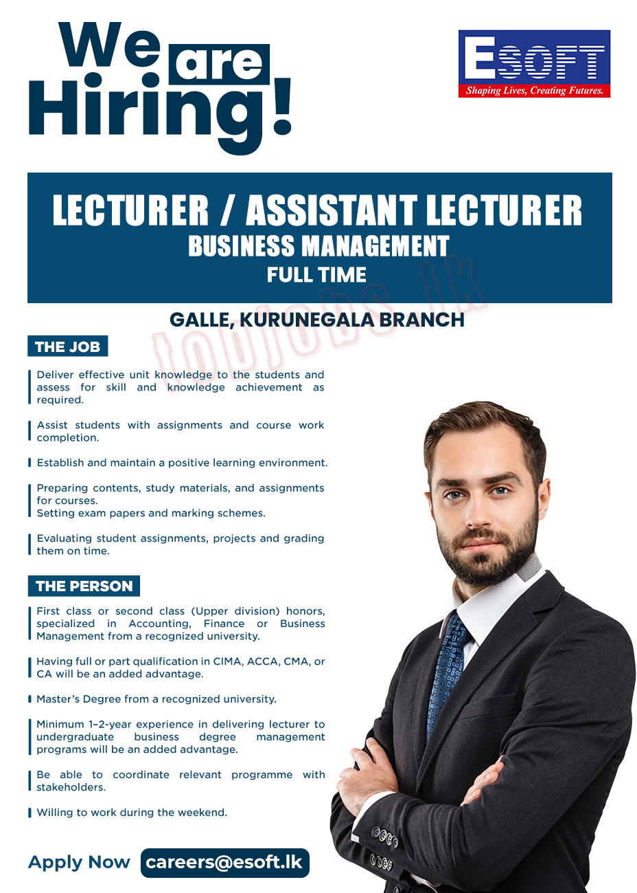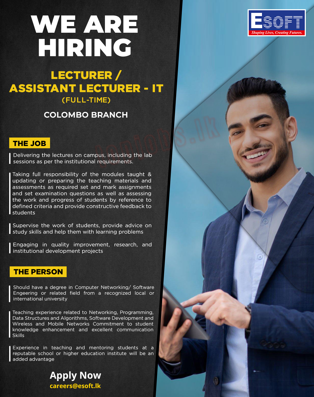 At ESOFT Career, we believe in nurturing talent and providing a supportive environment for career growth. Don’t miss this chance to be a part of an esteemed educational institution. Apply now and take the next step in your professional journey!