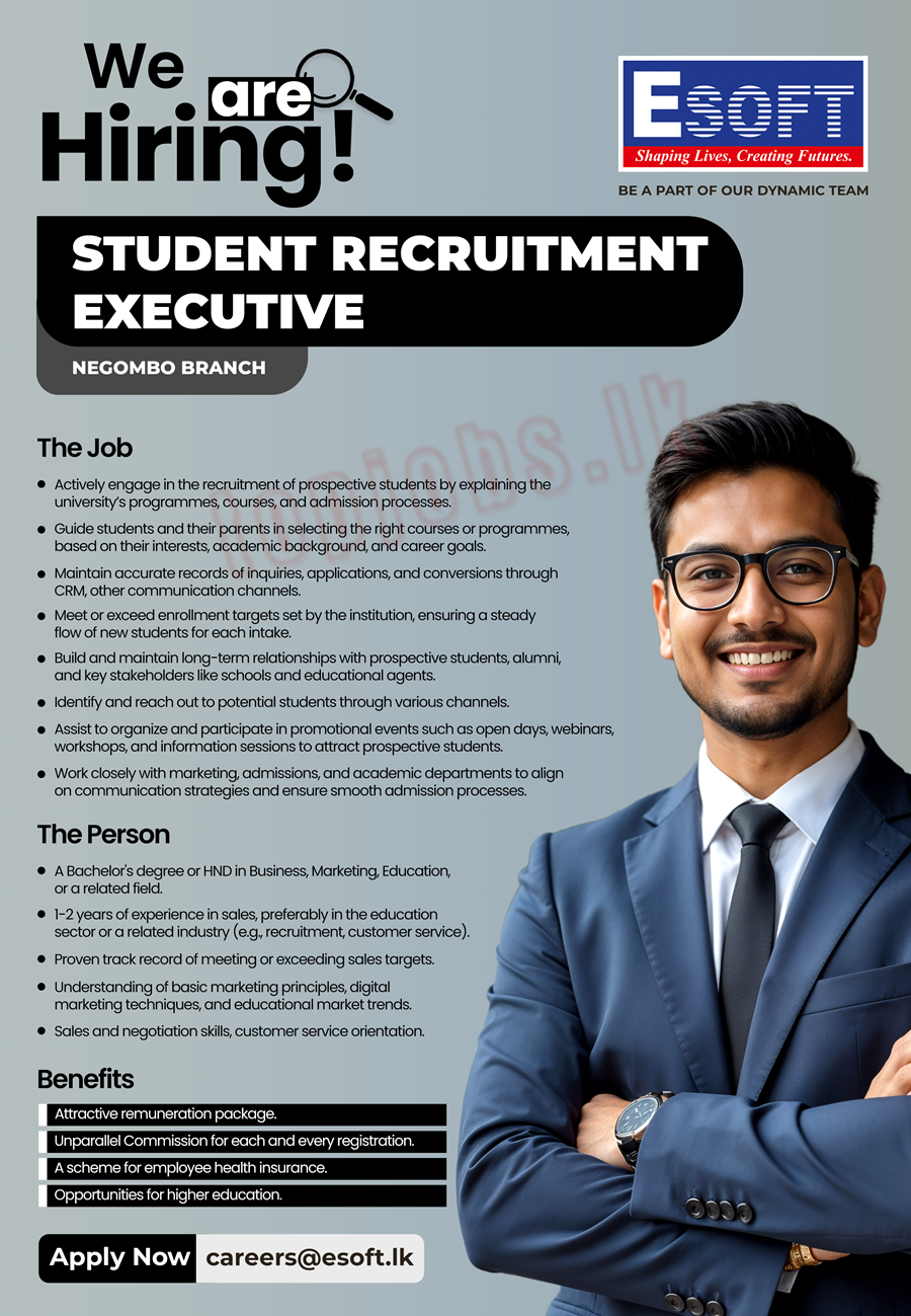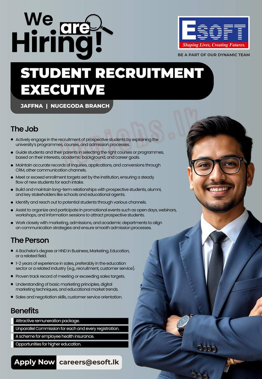 - Student Recruitment Executive – Jaffna & Nugegoda