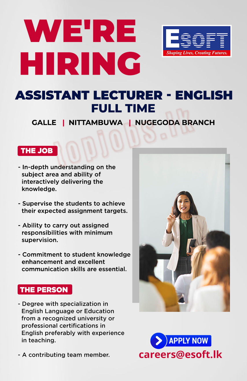 06. Assistant Lecturer – English – Full Time (Galle | Nittambuwa | Nugegoda)