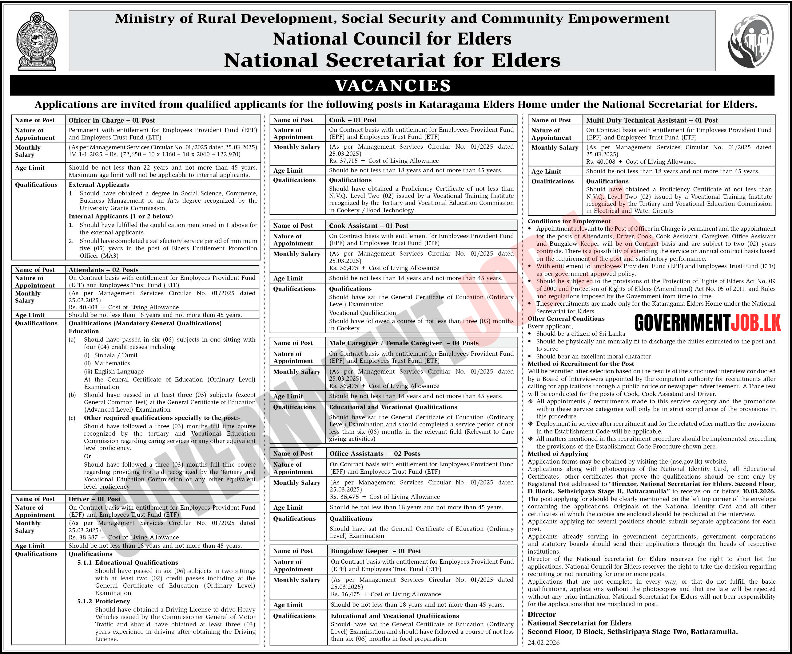 This is an excellent opportunity for individuals seeking public sector employment in Sri Lanka while contributing to social welfare and elder care services.