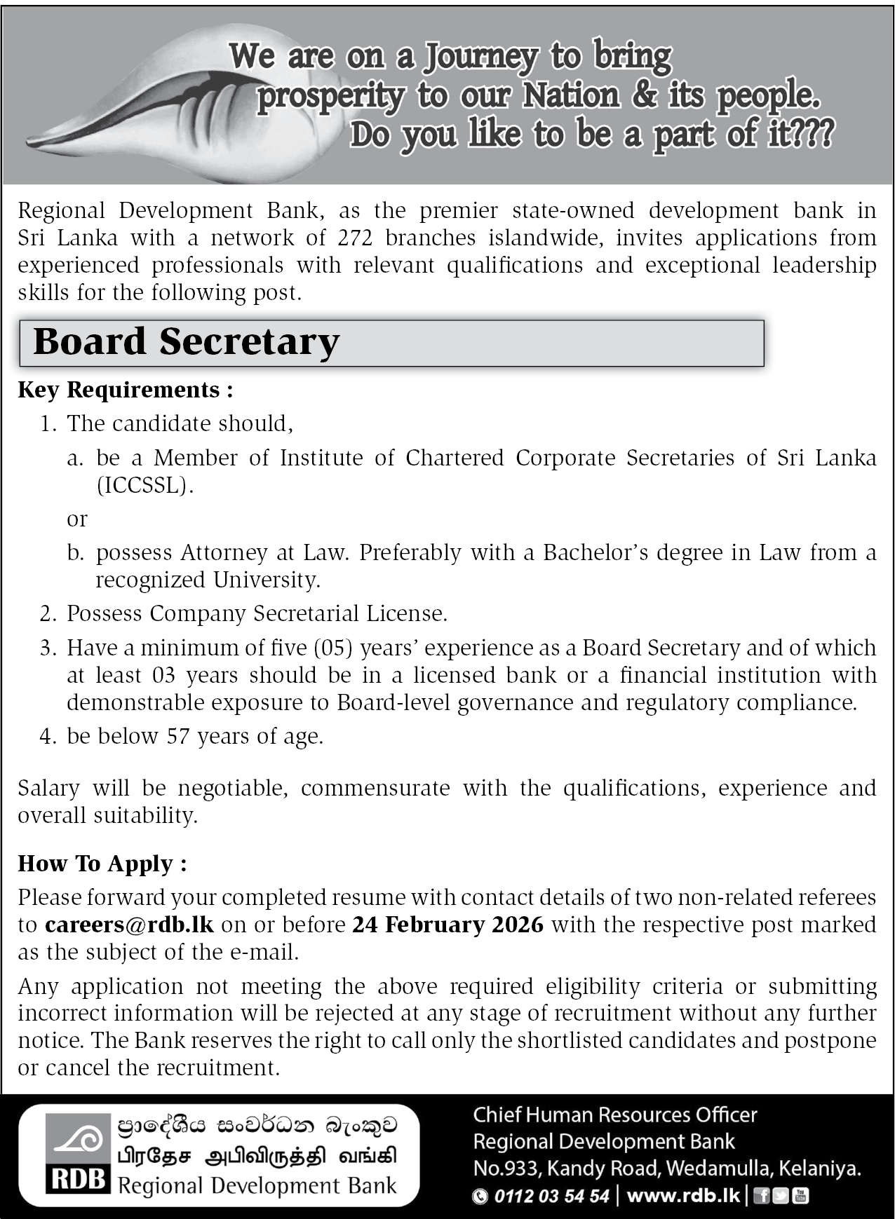 Regional Development Bank (RDB) Vacancies 2026 โ Apply Now for a Rewarding Banking Career!