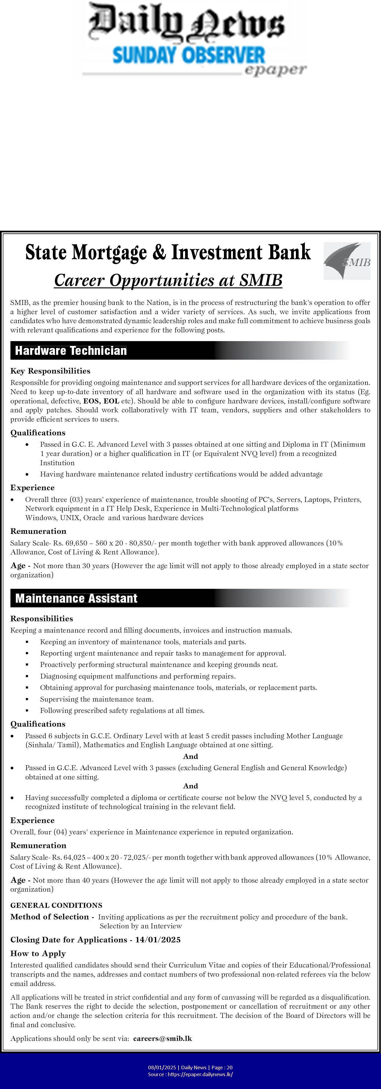 📧 Email: careers@smib.lk
